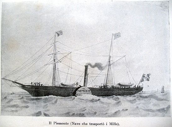 In the night of 5/6 May 1860 was she confiscated by some partisans under command of Nini Bixio in Genoa to transport the men from Garibaldi’s Expedition of the Thousand, 1,072 in all, from the Quarto near Genoa to Sicily.