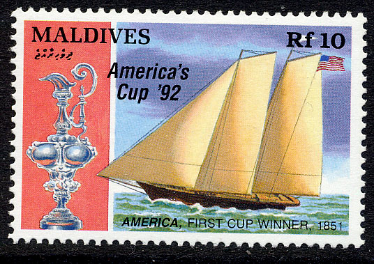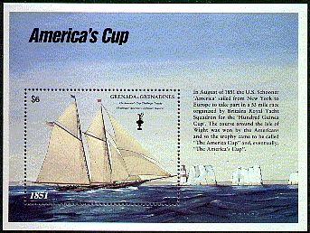 The AMERICA was a 19th century racing yacht that was the first to win the eponymous international sailing trophy now known as the America's Cup; in 1851 the trophy was known as the Royal Yacht Squadron's "One Hundred Guinea Cup", but was later renamed after the original winning yacht. On August 22, 1851, the AMERICA won by eighteen minutes in the Royal Yacht Squadron's 53 mile regatta around the Isle of Wight.