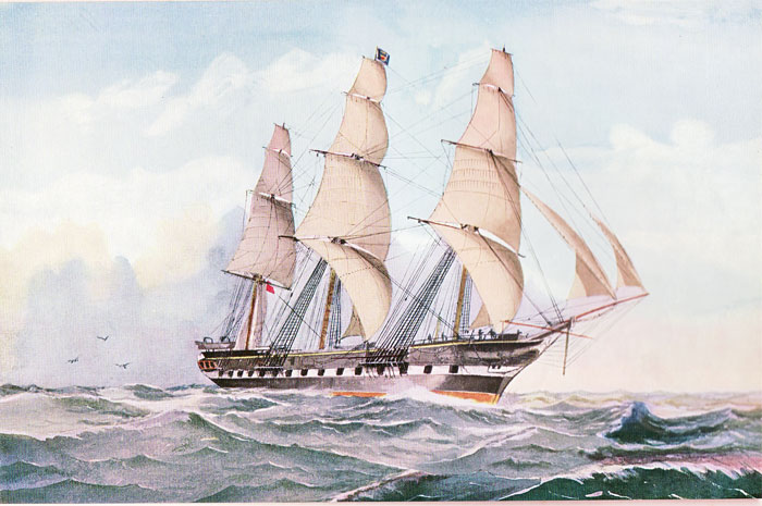 Source: The Blackwall Fregates and internet. This account of its wreck is from GGGPa's scrapbook and is dated Dec. 2nd, 1865. (Previously posted to The Ships List)