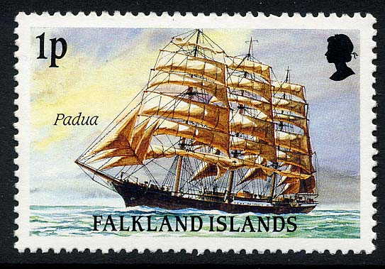 As PADUA on Falkland Islands 1989 1p sg 567 and Germany 1937 8pf + 4pf sg643.
