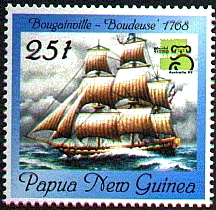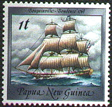 This completed, the expedition passed through the Straits of Magellan and crossed the Pacific in the trade wind belt to Tahiti, which Bougainville formally annexed, though it had been discovered eight months previously by the British Captain Wallis. The Frenchman's description of the island and its inhabitants gave support to the contemporary cult of “the noble savage”. Sailing on westwards, rediscovering Quiros's Espiritu Santo, Bougainville found his way barred by the Great Barrier Reef in latitude 15 degrees south. To withdraw from this area of perilous lee shores, he beat his way to windward until he could weather the eastern tip of New Guinea.