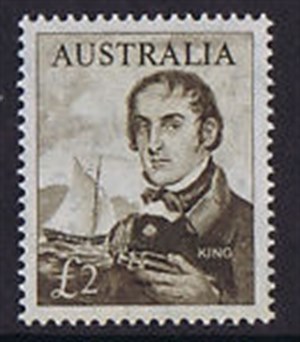 The Norfolk Island map-shaped stamps depict the survey cutter Mermaid, the issue commemorating the 50th anniversary of the Second Settlement of the Island. The Mermaid was of 84 tons builders measurement, 56ft. in length. She was purchased in 1817 at Port Jackson, and command of the vessel was given to Capt Phillip King, later to become Admiral Philip King. He is depicted on an Australian £2 stamp with the Mermaid in the background (S.G.360) and $4 stamp (SG403).The Mermaid was taken in hand for repairs in 1820 and was sold about 1823. The Norfolk Island stamp gives a much better idea of the vessels appearance than the much higher-priced Australian stamps. The Norfolk Island stamps of this set are attached to a peelable white paper which has printed on the back: "Norfolk Island tourist accommodations are in every range to every taste and purse. SG163