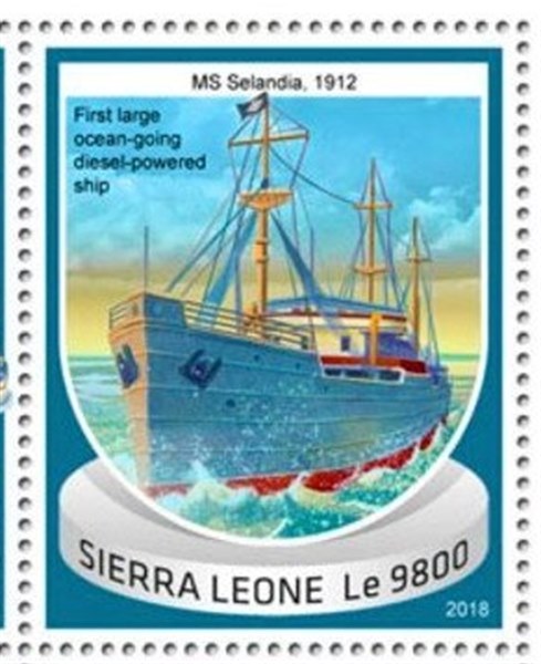 To commemorate the 50th anniversary marking the debut of the pioneer motorship Selandia, a special stamp of 60 I, A ore denomination blue in colour from a design by Rasmus