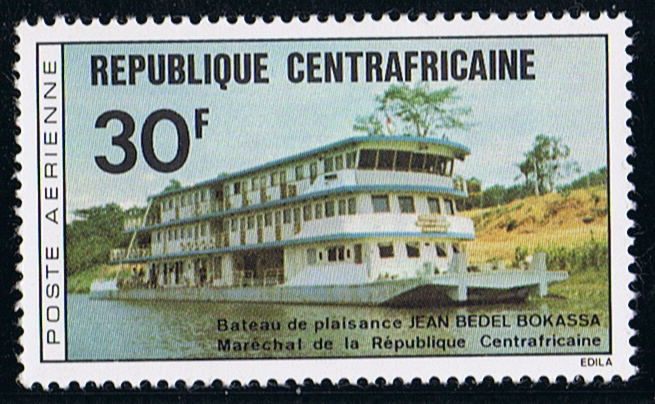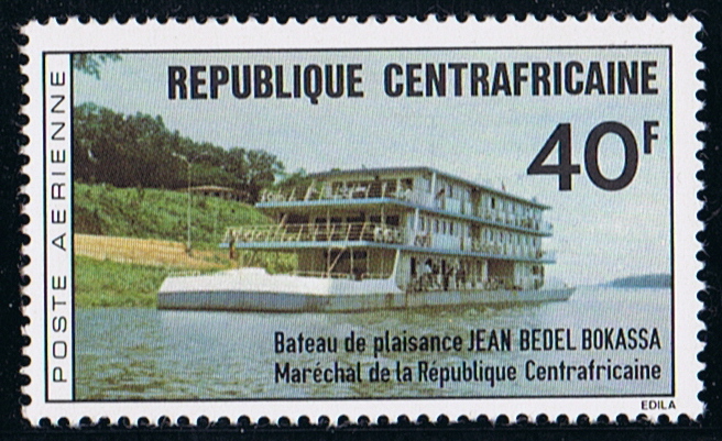 What must surely be the most unusual presidential yacht is the JEAN BEDEL BOKASSA, shown on the 30f. stamp of the Central African Republic. A Stern view of her is depicted on a 40f. stamp.