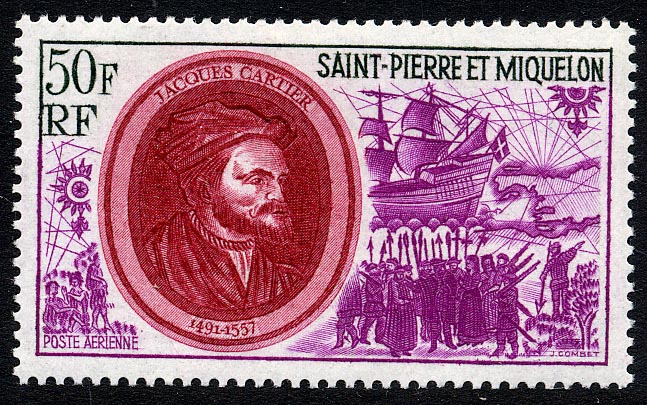 Cartier landed in St Pierre on 15 June 1536, and the coat of arms of St Pierre et Miquelon shows the ship GRANDE HERMINE.