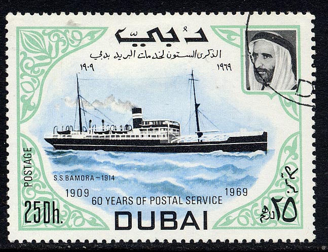 Bamora, (250h. stamp). A steel vessel of 3,285 gross tons, 1,878 net, she was built by Barclay, Curie and Co. Ltd., Glasgow. Her dimensions were 33.2 X 46.2 x 23.1 ft. and she had triple expansion engines supplied by the builders. Speed was 12 knots. The Bamora was one of three sister ships all built in 1914 by Barclay, Curle, (the others being the Bandra and Barpeta) for service between India and Persian Gulf ports. The Bamora was sold to Indian buyers and broken up in May 1950.