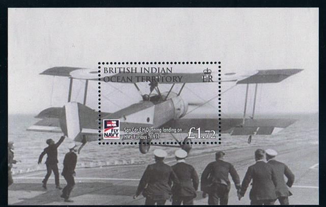 The Isle of Man stamp shows Fairley Flycatchers in the colours of 401 Flight from he Courageous Class aircraft carrier, HMS FURIOUS, over the Irish Sea in 1932. These aircraft were the main carrier-borne fighters available to the Fleet Air Arm from 1924-1932 and they served with the Home, Mediterranean and China Fleets.
