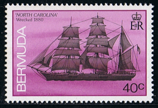1880. January 1. The English iron-hulled barque, NORTH CAROLINA, approximately 205 feet in length, about 533 tons. She was launched for the Macmillan & Son Shipyard in Dumbarton, Scotland in October 1876 and was owned and operated by Patton, Vickers and Co. of Liverpool. She was en route from Baltimore to Liverpool in winter 1879, with a general cargo of cotton and other goods, when it was discovered that the rudder was damaged and, on 21 November 1879, she detoured to Bermuda for essential maintenance. The repaired ship left St. George’s Harbour, Bermuda on 30 December 1879 but ran aground on western reef on New Year’s day. There are many conflicting reports regarding the cause of the accident, as there were no problems with either the weather or visibility. The authorities were suspicious of the fact that the cargo was saved so quickly. The ship had the highest insurance classification allowed by Lloyds of London and it was suspected that the NORTH CAROLINA’s captain, Alexander Buchan, was in collusion with someone in Bermuda and had planned to wreck the ship. Today, the wreckage of the NORTH CAROLINA sits upright in 25-45 feet of water.