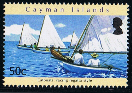 The Cayman Islands Cultural Series Part 3: Catboats is a six-part stamp series depicting various aspects of the catboat's development and role. The 20¢ stamp is titled, Catboats: Catching turtles. There are two 25¢ stamps, titled, Catboats: Being built and Catboats: Sailing around the Bluff. The 50¢ stamp is Catboats: Racing regatta style; the $1.60 stamp is titled, Catboats: Unloading cargo; and the $2 shows Catboats: Sewing the sails. The first day cover depicts a young man blowing a conch shell to let residents know that he and his father were on their way in with the day's catch.