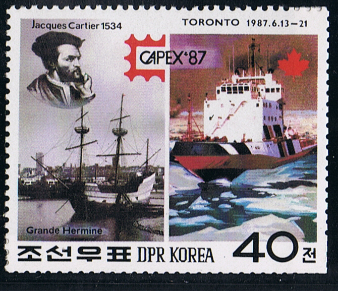 The other vessel depict on this stamp is GRANDE HERMINE, a replica of Cartier vessel.