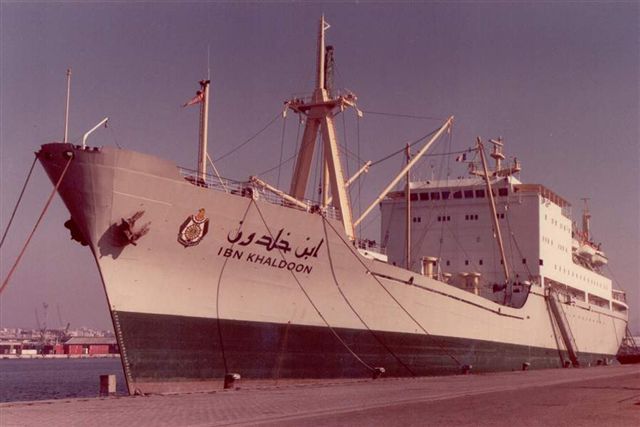 I agree that the ship on the 1981 Iraq stamps s.g.1507/8, given as IBN KHALDOON, is definitely not her. I think the ship shown is one of the Govan-built vessels, such as IBN RUSHD, I think there were four of them built there and entered service about 1978/1980. Any takers?
