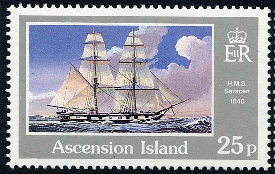 HMS SARACEN. 1840. A brig-sloop of 10 guns of the Cherokee class. Built at Plymouth Dockyard 30.1.1831. Became a survey vessel in February 1854 and then was exchanged at Singapore in part payment for the sailing vessel Young Queen which in turn became the HMS Saracen of 1862.