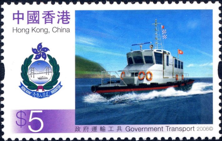 In 2006 Hong Kong issued a set of 6 stamps showing Government Transport. The HK$5.00 shows an Immigration Department vessel.