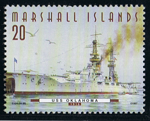 23 March 1914 launched as the USS OKLAHOMA (BB-37), christened by Miss Lorena J. Cruce, daughter of Governor Cruce of Oklahoma. She had one sister the NEVADA.