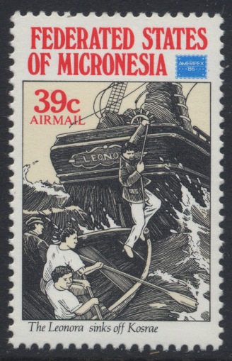 In January 1874 Louis Becke, who later wrote stories of the exploits of Bully Hayes, joined the Leonora at Mili Atoll in the Marshall Islands. The Leonora was wrecked on 15 March 1874 during a storm while in Lelu harbour at Kosrae[5] at what is now the Utwe-Walong Marine Park on Kosrae.
